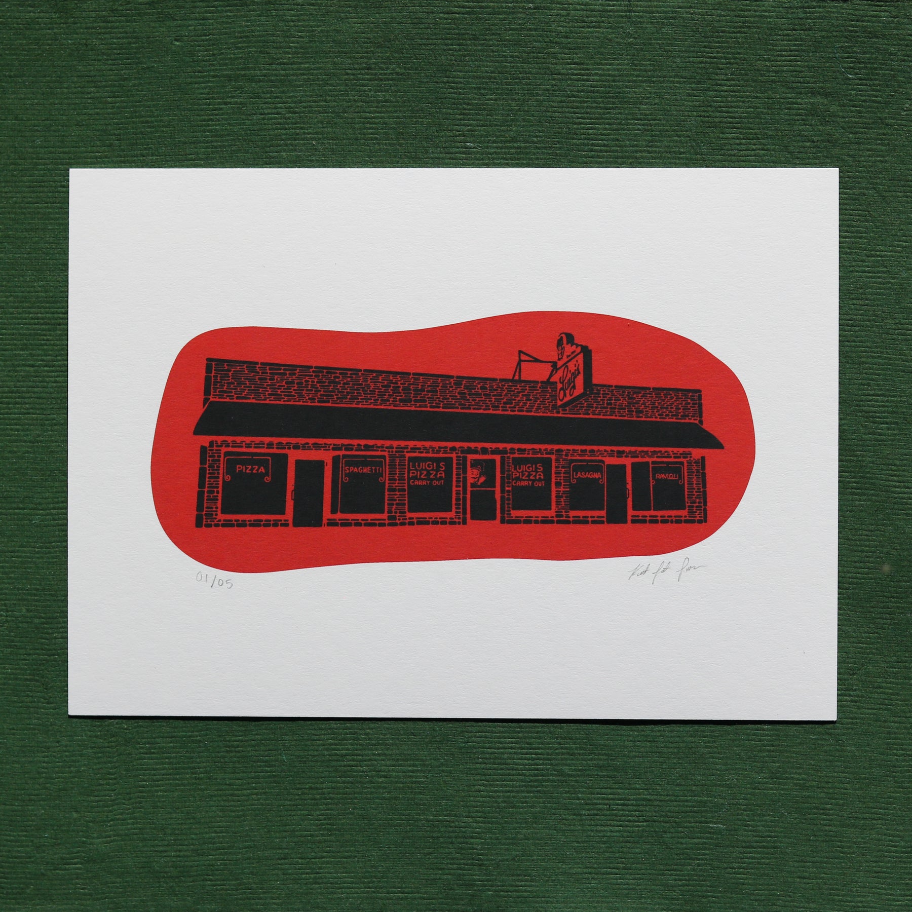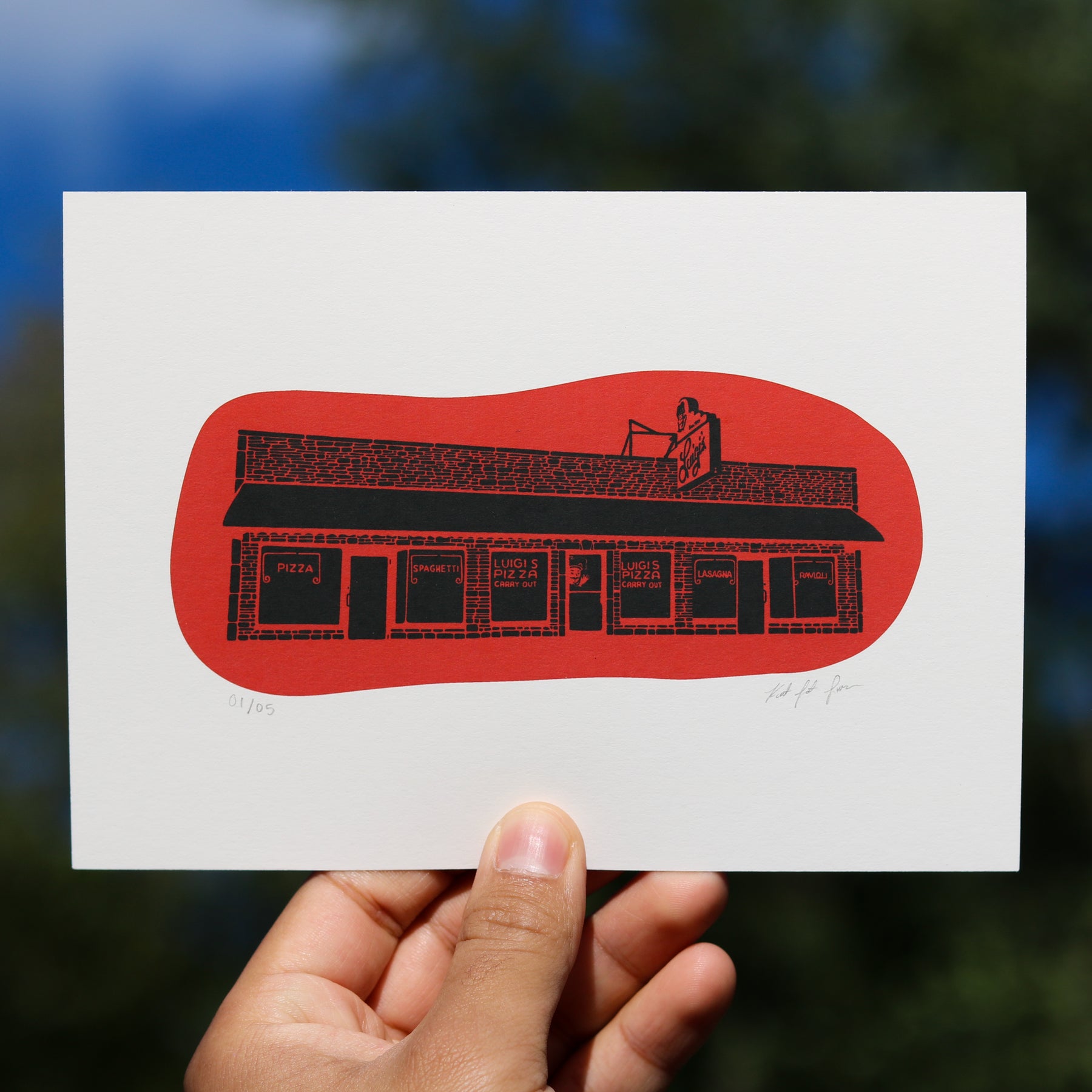 Original designs are created through hand sketching and digital illustration. Artwork inspired by Luigi’s in Akron, OH.